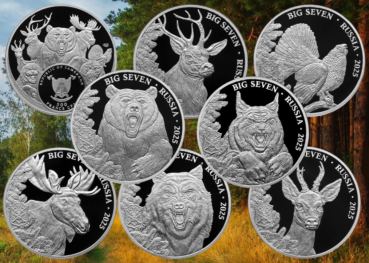 Рады объявить о совместном проекте с компанией Новые монеты, которая организовала выпуск на Санкт-Петербургском монетном дворе (СПМД) по лицензии Республики Камерун памятных монет, посвященных наиболее почетным трофеям охотников в России.
