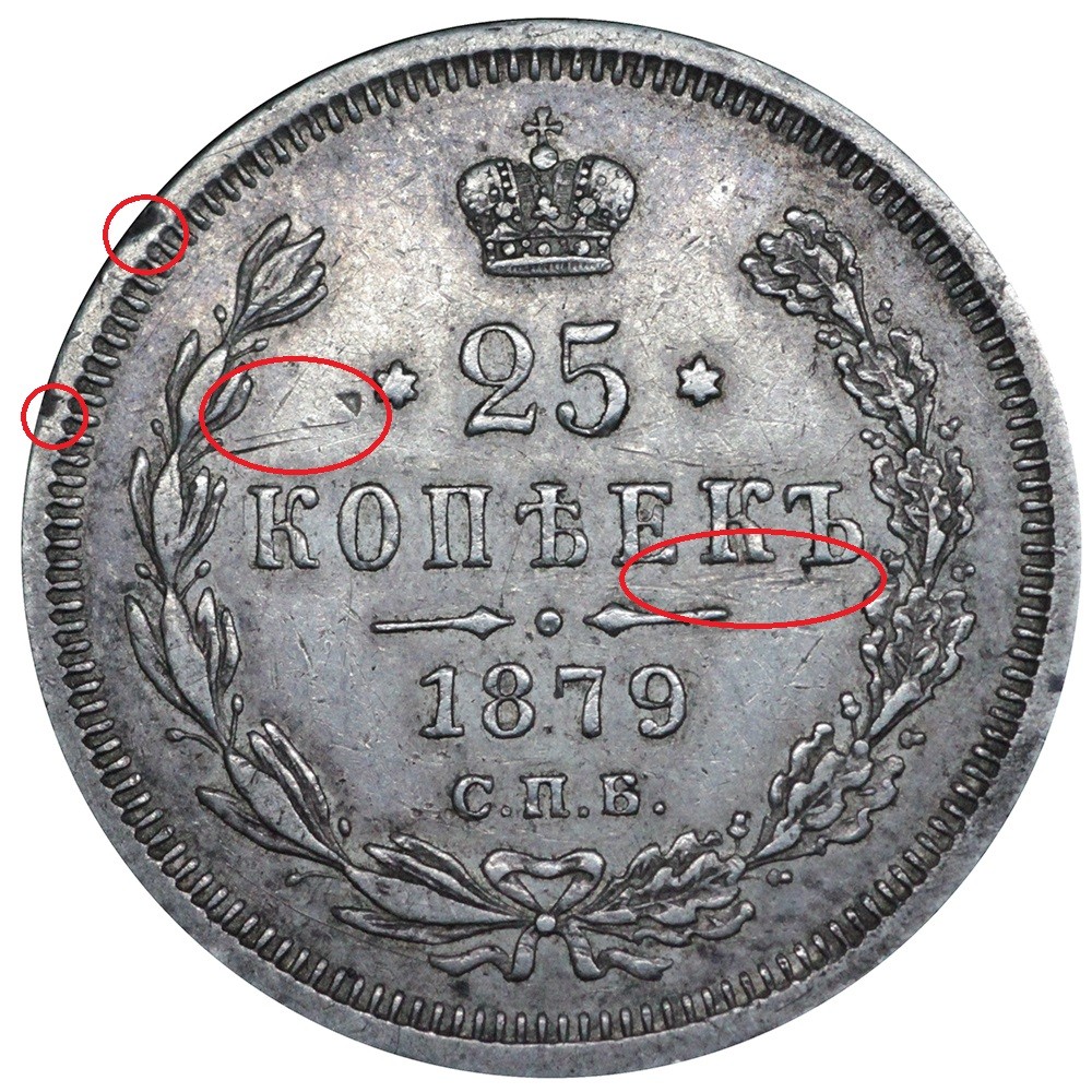 При этом монета может иметь недостатки, которые менее заметны и выявить их может только опытный профессионал. Это может быть легкая реставрация поля, правка канта или гурта, травление или неправильная мойка монеты.